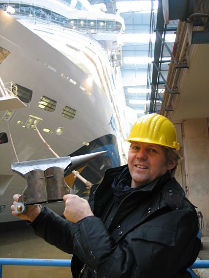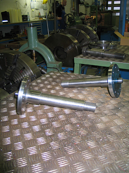 Die Achsen müssen ca. 3,5 Tonnen tragen, gedreht wurden sie in der Meyer-Werft.
